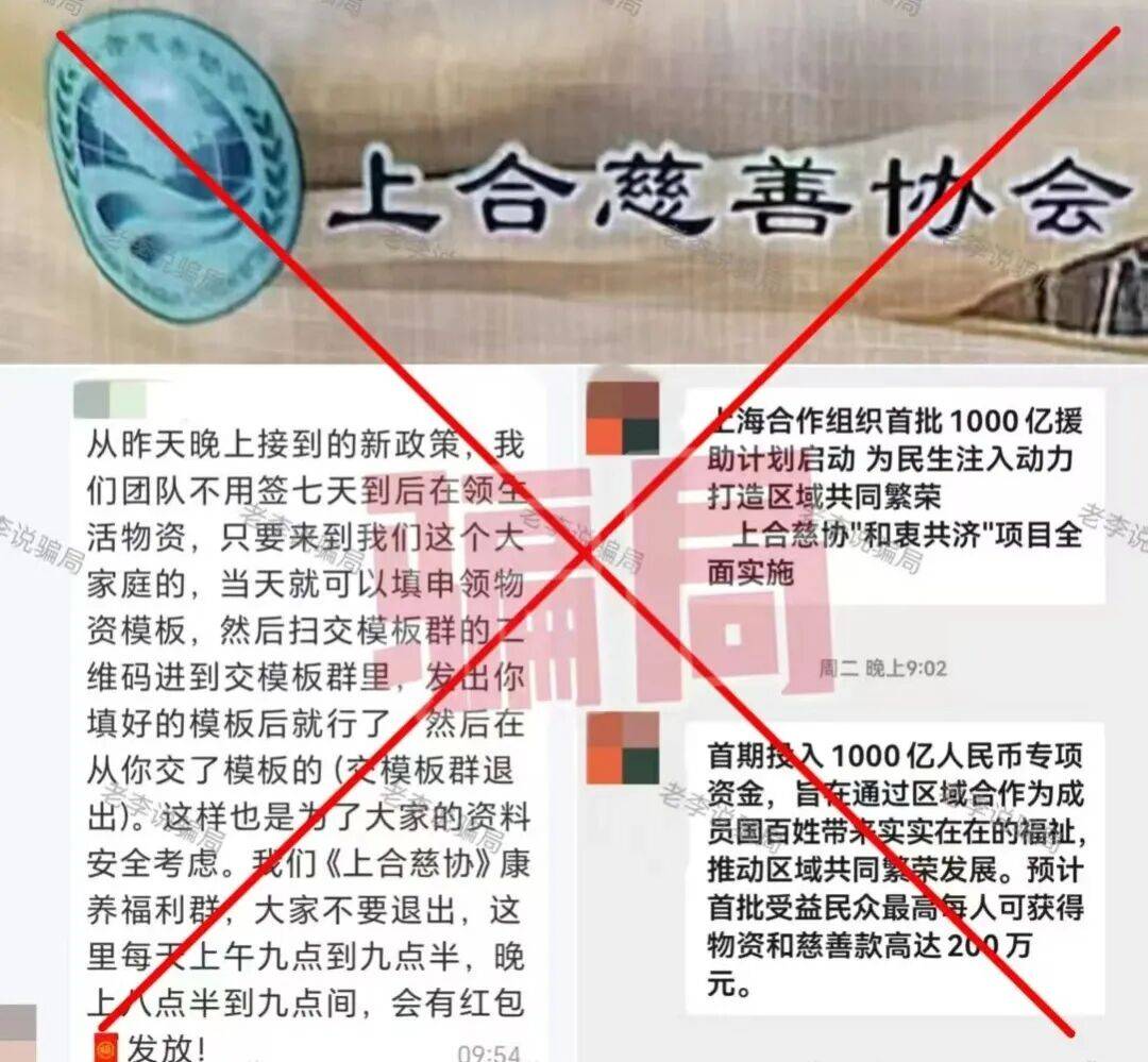 冒充“上合组织”名义,谎称为参与者发放慈善款和物资,吸引用户提交详细个人信息。