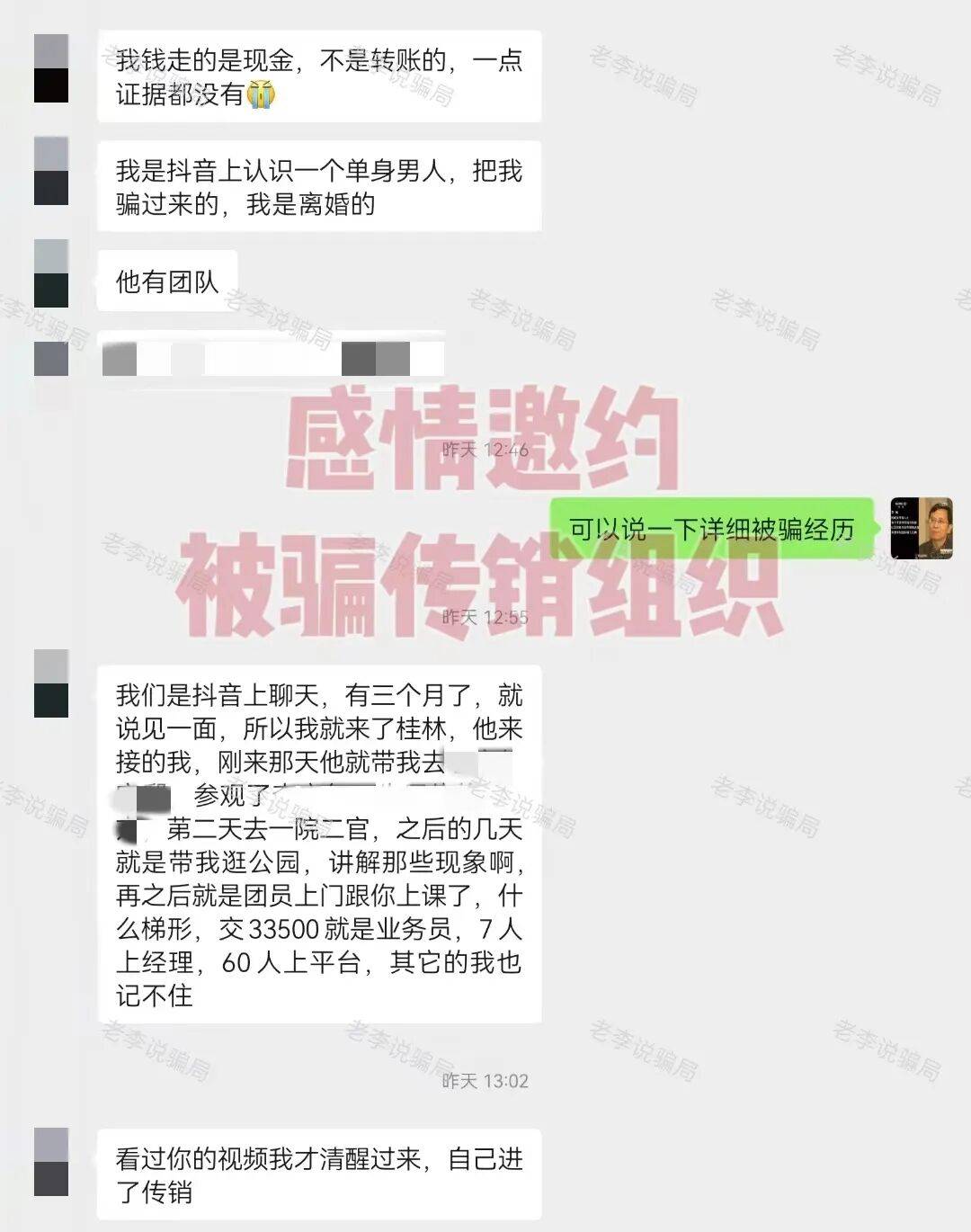 期间,网友虽没有被限制自由,但手机被没收。最终,在男子与组织成员的轮番轰炸下,听课9天后,现金缴纳33500元加入其中。好在,网友在观看了李旭反传防骗团队发布的预警视频后,幡然醒悟,特发来求助。返回搜狐,查看更多