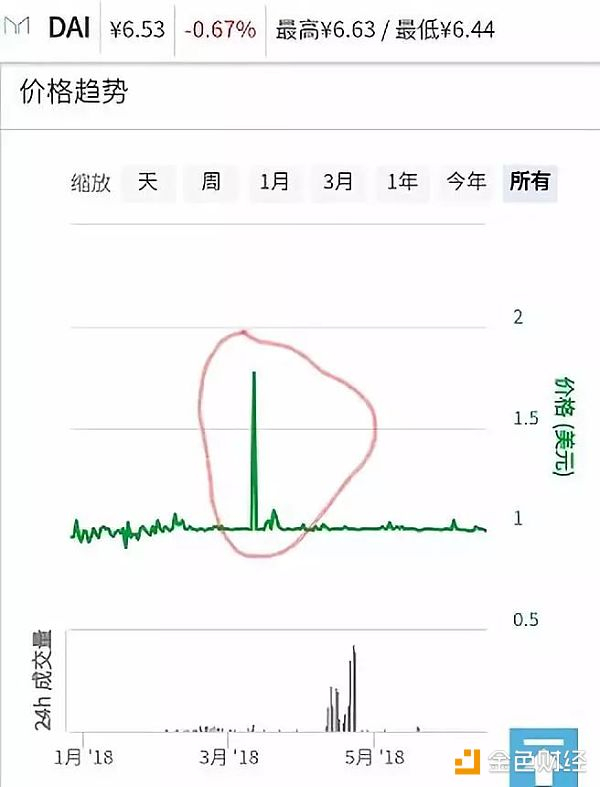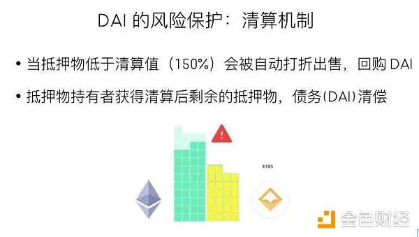 由于整个过程是在智能合约上进行的,消除了像USDT这种中心化稳定币机构人为超发的风险,又通过市场调节机制平抑DAI价格的波动。
