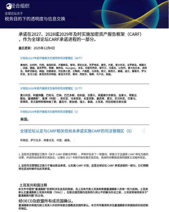 如果说CRS曾经终结了“海外账户隐形时代”,那么CARF的出现,几乎宣告了加密资产“灰色自由期”的结束。币圈不再是税务盲区,而是正在被正式纳入全球自动信息交换体系之中。